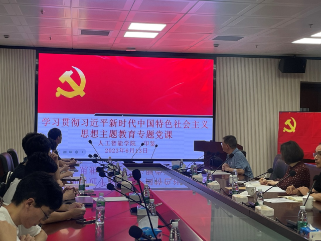 印鉴同志面向全体党员讲授题为《高举中国特色社会主义伟大旗帜,为全面建设社会主义现代化国家而团结奋斗》主题党课,向同学们传达了党的二十大和学校第十四次党代会精神,详细回顾了国家在过去十年中实现的跨越式发展、历史性突破和格局性变化,并结合学院自2020年成立以来坚持以“人工智能+国之大者”发展理念取得的相关成果作为案例进行讲授。印鉴同志勉励同学们要永远听党话跟党走,拥护党中央决策部署,努力学好本领,在攀登知识高峰中努力追求卓越,在肩负时代重任中行胜于言,在真刀真枪实干中成就一番事业、开创一片天地。