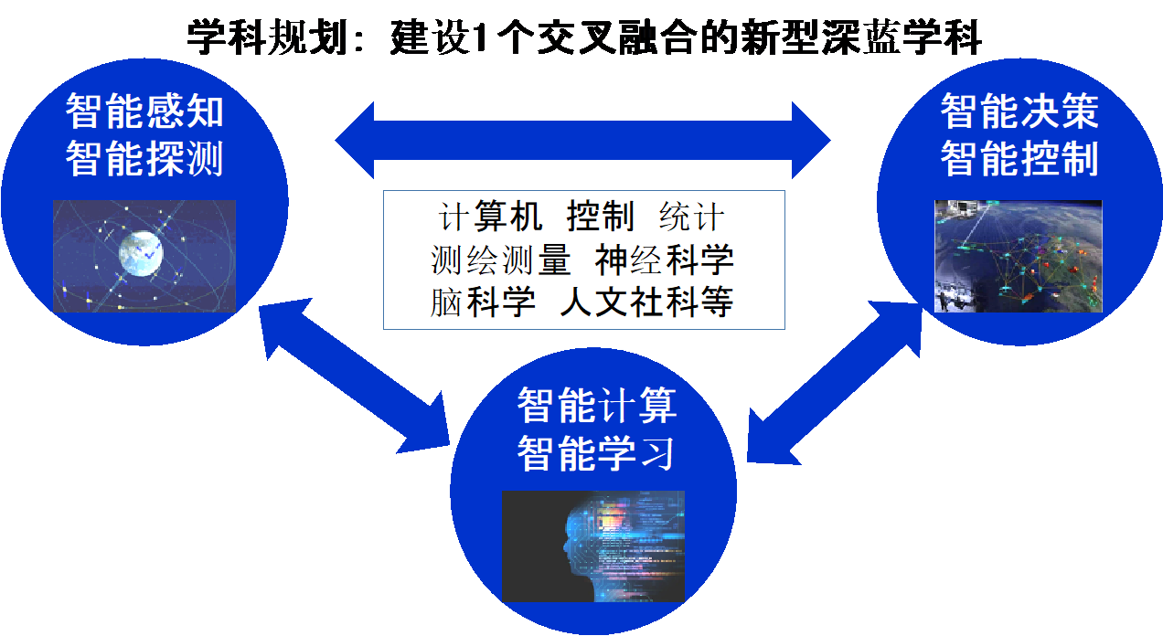 学院矢志成为深蓝核心力量,服务于深海、深空、深地等前沿探索领域,聚焦人工智能多学科交叉融合特性,加快推进学院科研工作全面发展。目前已形成“1+3”总体发展规划:“1”指建设1个具有交叉融合特点的新型深蓝学科,其内涵主要包括计算机、控制、统计、神经科学等学科;“3”指学院重点发展“智能计算与智能学习”、“智能感知与智能探测”、“智能决策与智能控制”3个关键领域。面向国家重大需求,深度服务人工智能研究院国家级大平台建设,积极发展支撑无人集群系统的人工智能新模型、新算法;面向世界科技前沿,聚焦新一代人工智能紧迫技术需求和重大科学问题,在行业大模型、大数据智能、空天智能等方面形成了自我特色;面向经济主战场和人民生命健康,支持粤港澳大湾区战略性支柱产业,推动新一代人工智能技术在遥感测绘、医学辅助诊断、海洋气象预报、空天智能等领域的赋能,加速其产业化应用步伐。学院成立以来,获得国家及省部市等各类项目共70余项,形成了学科交叉融合、军民产深度协作的良好局面。