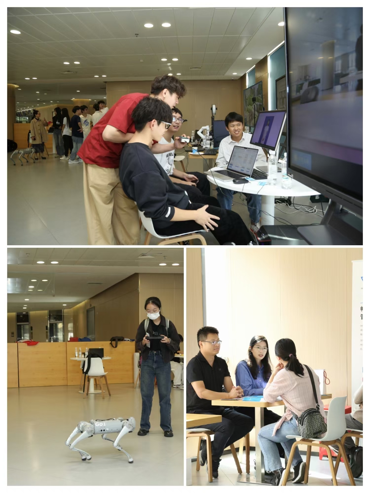 在展区,来自ok138cn太阳集团与企业所展示的AI发展新成果吸引了关注的前来参加活动的师生的关注。来自ok138cn太阳集团实验室的机器狗、车载激光雷达、VR设备以及3D打印机等设备展现了目前AI在各行各业的广泛应用。