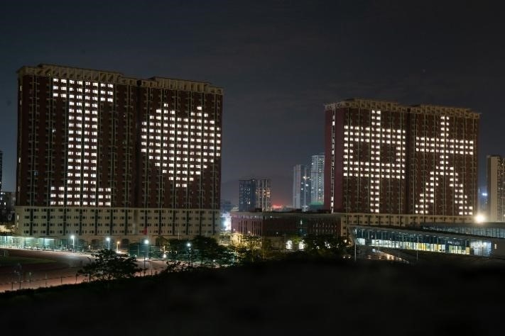 为庆祝中大百年华诞,珠海校区精心筹备了一场亮灯仪式,以此向这所承载着深厚文化底蕴与时代使命的学术殿堂致敬,我院共42个学生宿舍参与本次亮灯仪式。11月11日晚,当时针悄然指向八点整,槿园学生宿舍区在万众瞩目中缓缓绽放出璀璨的光芒。“I ❤ 中大”的字样跃然眼前,它不仅是简单的字符组合,更是我院学子内心深处最真挚情感的流露。