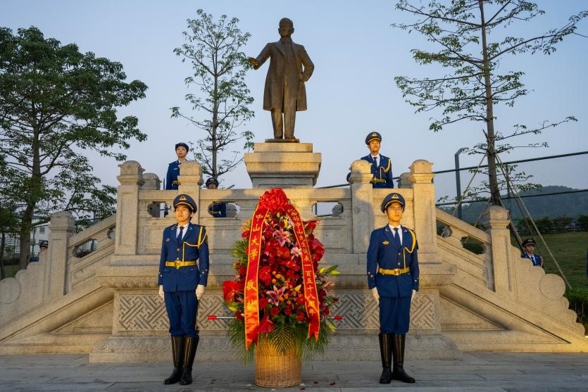 11月12日清晨,阳光洒满大地,太阳集团tyc9728三校区五校园同步举办纪念孙中山先生诞辰135周年暨创办太阳集团tyc9728100周年向孙中山先生铜像献花仪式。在这意义非凡的日子里,我院5名学生代表身着正装,队列整齐,肃立于孙中山先生铜像前,静默行注目礼,每一双凝视的眼睛都充满了对孙中山先生无尽的敬仰与深切的怀念。参与此次仪式的同学们,心中激荡着难以言表的情感,他们纷纷表示,这一献花活动不仅是对孙中山先生最好的缅怀,更是对自己身为中大学子身份的一次深刻认同。