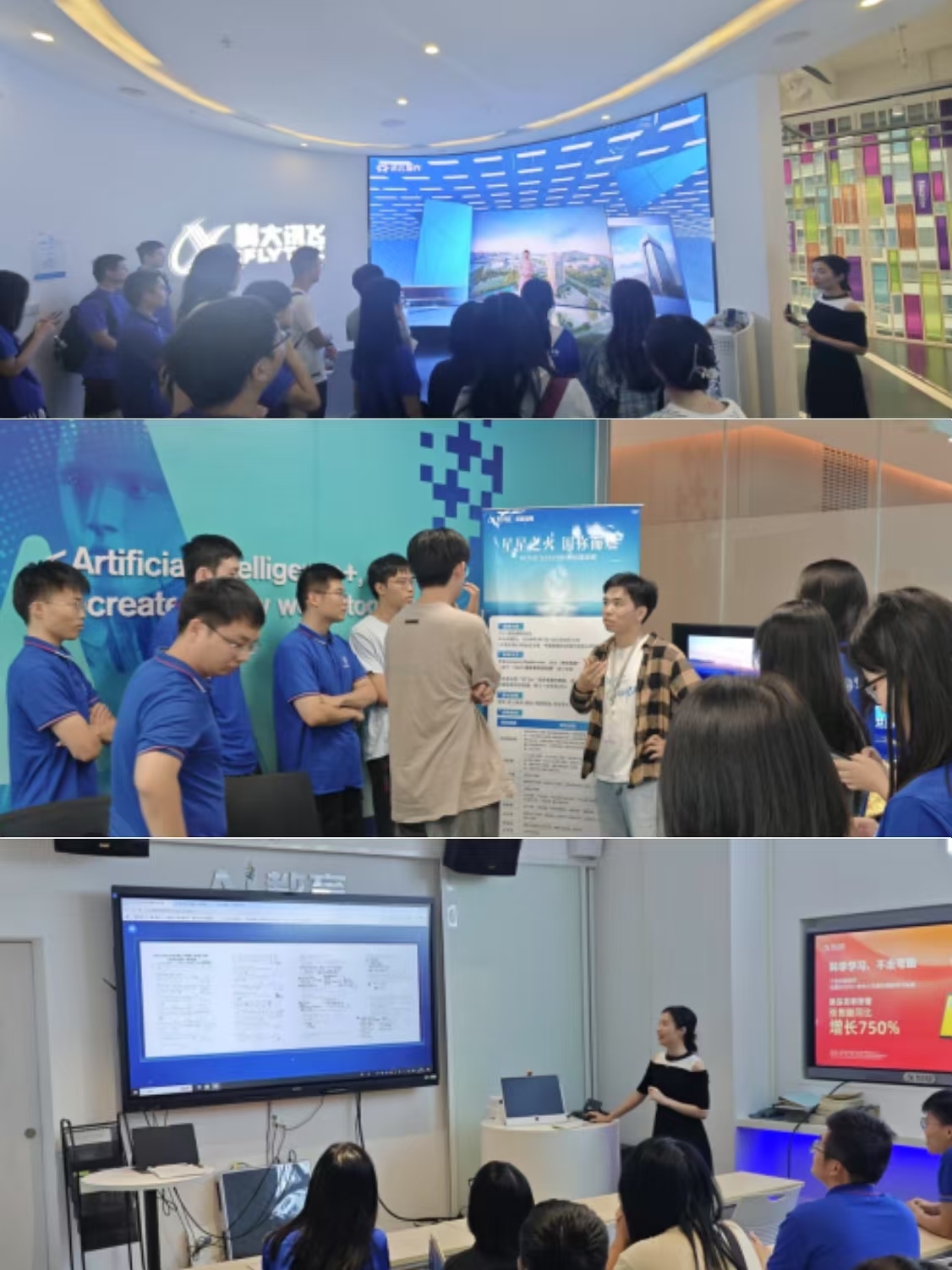 参访过程中,公司人事部经理向学生详细介绍了公司在语音识别、自然语言处理等领域的最新进展,并分享了华南地区招聘岗位的类别、工作地点以及技术要求等信息,让学生对自己的职业路径有了更加清晰的认识和规划。在科大讯飞的技术展厅内,大家参观了最新的语音识别、翻译技术以及AI互动教学课堂等成果展示。技术人员现场演示了通过语音识别技术实现多语言实时翻译的过程,以及如何利用AI技术打造个性化的在线学习平台。这些生动的演示不仅展示了科大讯飞在技术上的领先地位和创新能力,也极大地激发了学生们对人工智能未来发展的无限想象和憧憬,为他们今后在技术企业的发展道路上指明了方向。