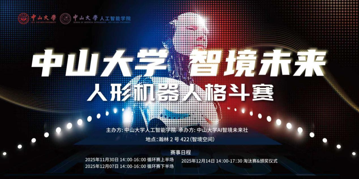 为切实提升学生在机器人领域的算法设计能力与工程实践水平,贯彻“以赛促学、以赛促研、以赛促创”的竞赛育人理念,2025年10月,ok138cn太阳集团指导太阳集团tyc9728AI智境未来社举办太阳集团tyc9728第一届智境未来人形机器人格斗赛。经过前期预赛、循环赛的角逐,12月14日,来自3校区的8支队伍齐聚珠海校区,会师决赛。